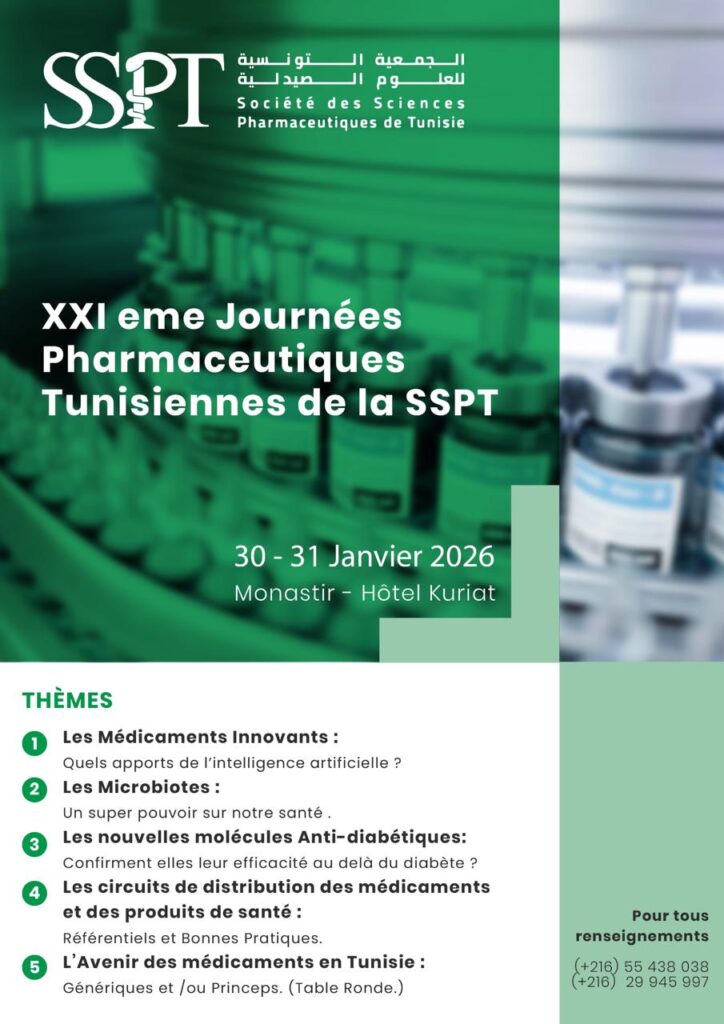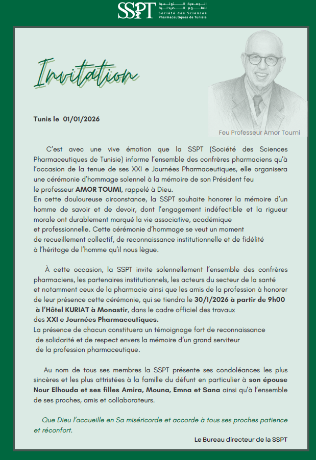 Espace réservé aux annonces officielles, actualités scientifiques et informations institutionnelles de la Société des Sciences Pharmaceutiques de Tunisie. Accès privilégié aux événements, publications et décisions majeures dans le domaine pharmaceutique